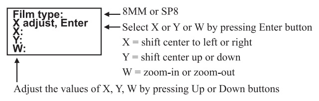 If your film is off-center, you can make adjustments of the Movie Register (the film center, X and Y and zoom-in/out factor on the screen). If frame adjustments are needed, make the changes before recording.