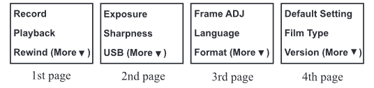 5. Press the Menu button twice to go back to Record mode or Main/Home menu.