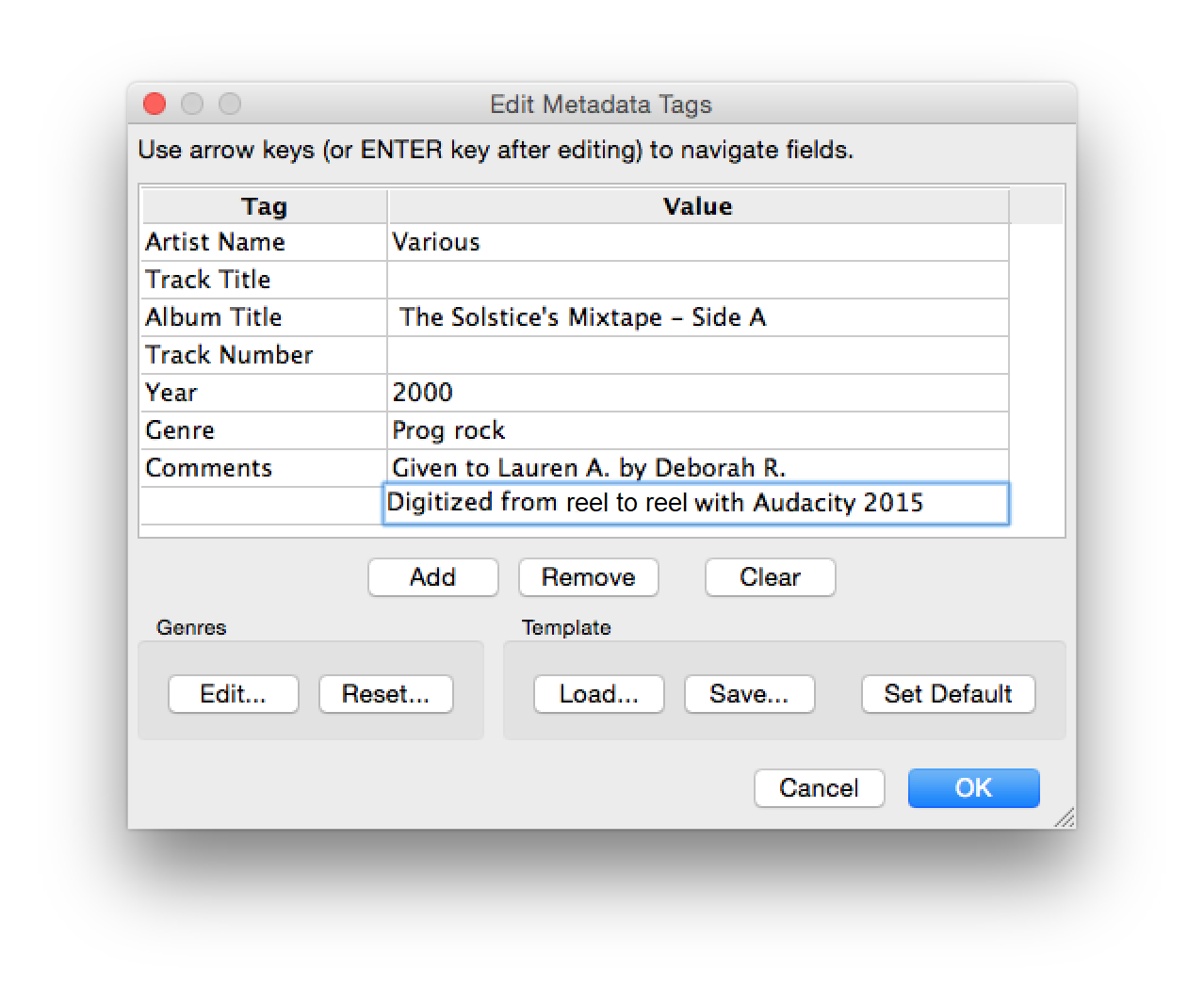 Audacity metadata