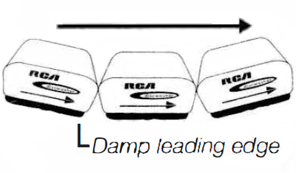 • Diagram of vinyl record cleaning process showing leading edge