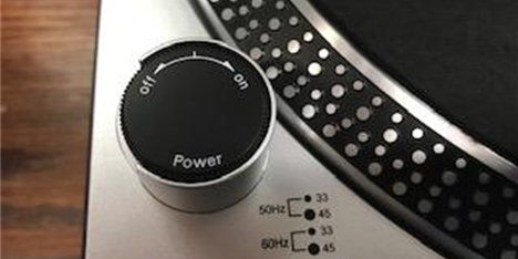 • The power knob is on the bottom left hand side of the turntable. Rotate the knob clockwise to power on the turntable.