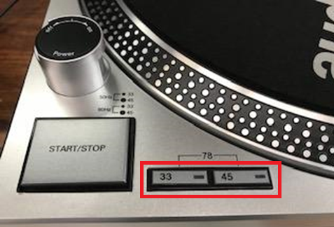 photo demonstrating where the 33 and 45 rpm playback buttons
