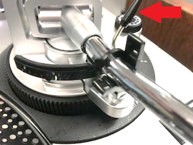 • photo demonstrating the up position of the tone arm